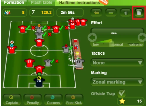 Sie können auch die Taktik für die zweite Halbzeit ändern. Die Änderung der Taktik ist kostenlos.