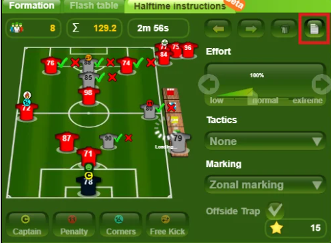 Vous pouvez également modifier la tactique pour la deuxième mi-temps. Le changement de tactique est gratuit.