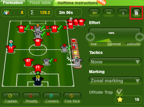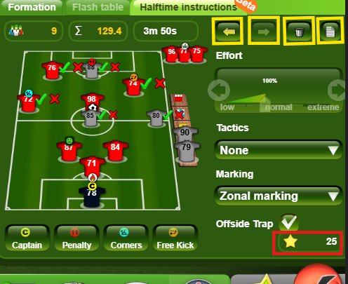 Jeśli chcesz zmienić krycie lub włączyć/wyłączyć pułapki ofsajdowe w przerwie meczu, jest to również możliwe (nie są wymagane GU GWIAZDY).