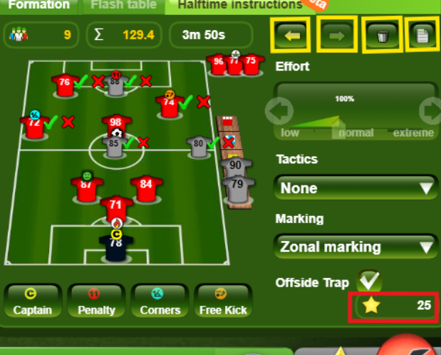 İstediğiniz takdirde, devre arasında markajı değiştirebilir veya ofsayt tuzağı türünü etkinleştirebilir/devre dışı bırakabilirsiniz (STARS gerekmez).